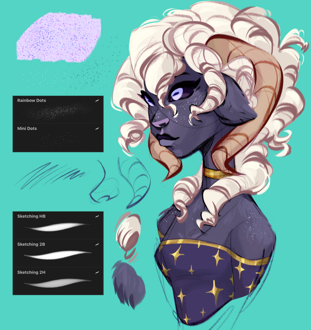 15 Procreate custom brushes that I use for sketching, lineart and shading, with a clean sharp feel to them.