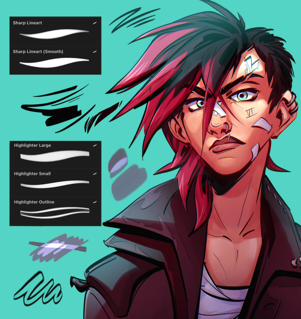 15 Procreate custom brushes that I use for sketching, lineart and shading, with a clean sharp feel to them.